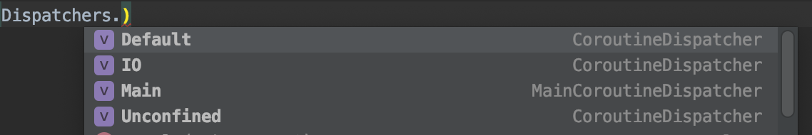 - Dispatchers.Unconfined - main 스레드에서 동작하는 특별한 디스패처인 듯 하지만 실제로 다른 메커니즘을 가진다. 추후 설명