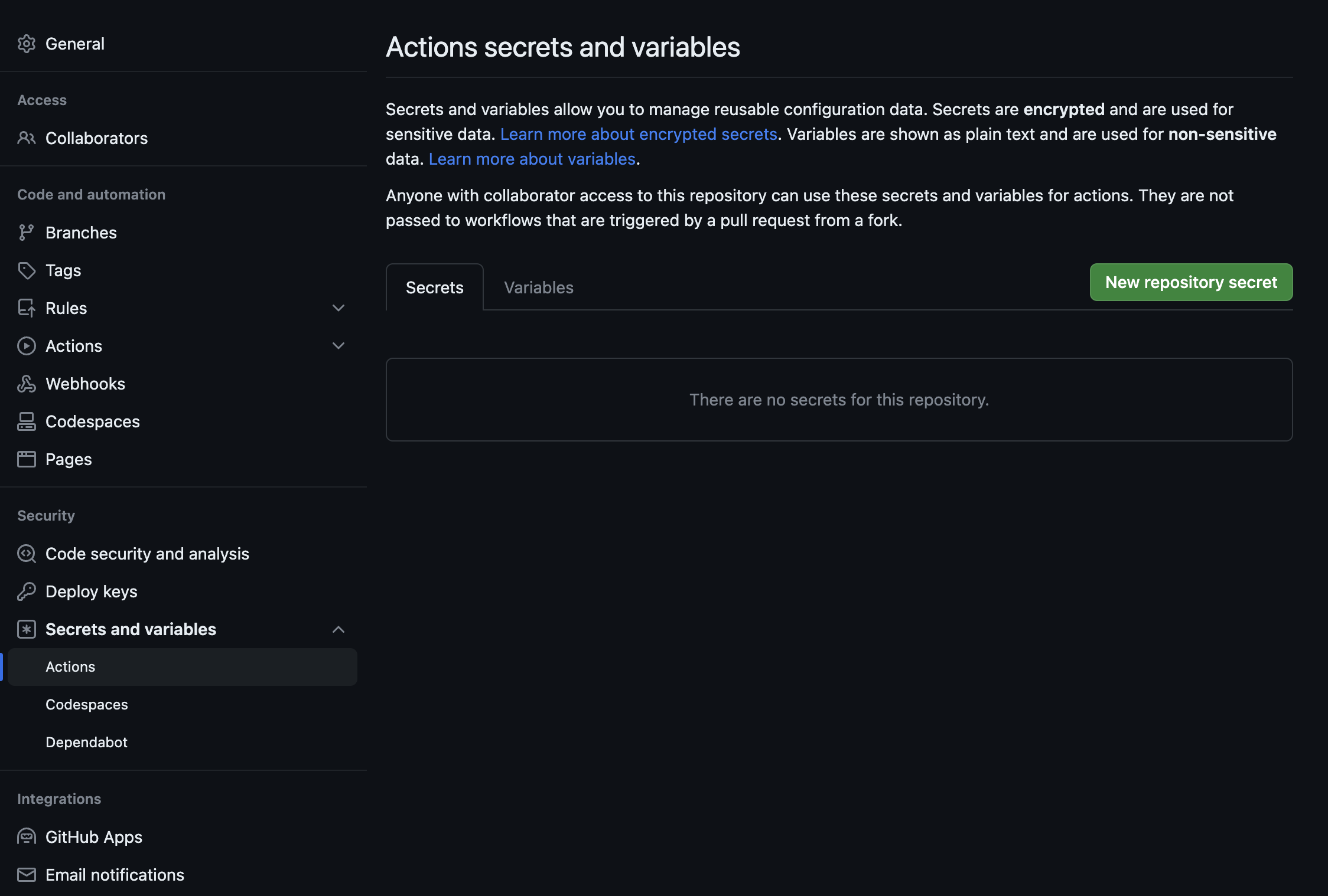 github action 단계 설명 2. github action yml 파일 생성 전 준비물