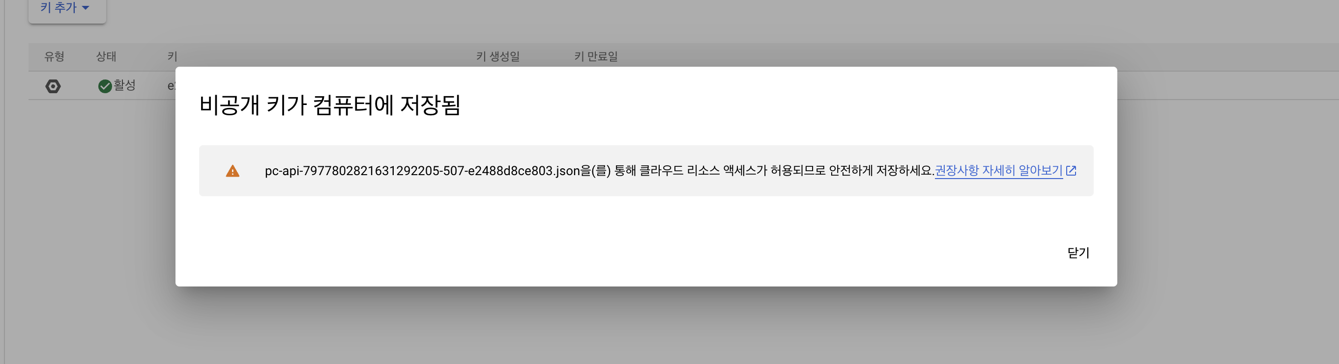 공식 문서 - https://cloud.google.com/iam/docs/keys-create-delete?hl=ko#iam-service-account-keys-create-console