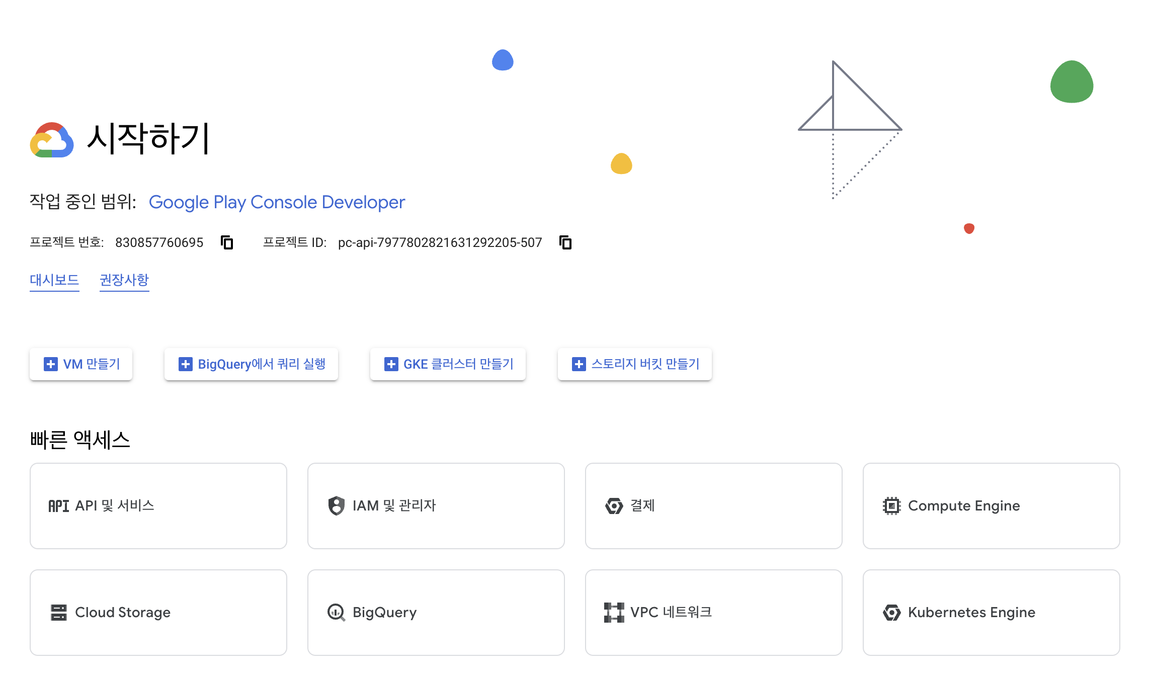 연결된 프로젝트 -> Google Cloud Platform에서 보기를 선택하여 GCP로 이동합니다.