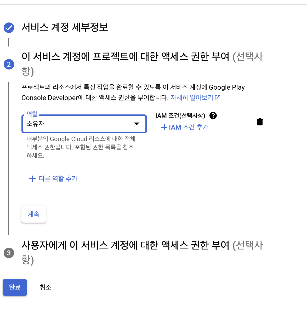 역할을 부여합니다. (저는 소유자로 선택했습니다.)